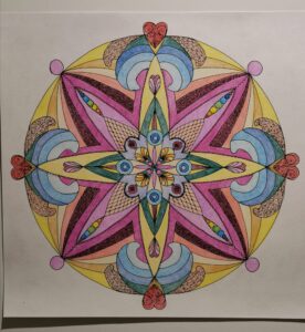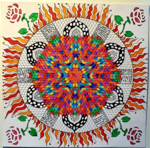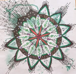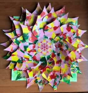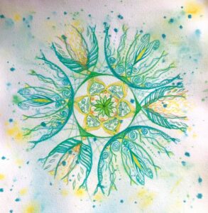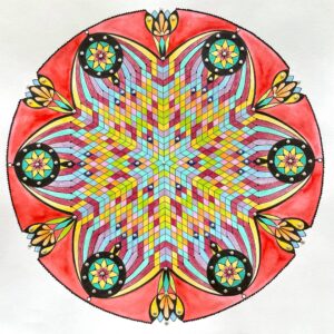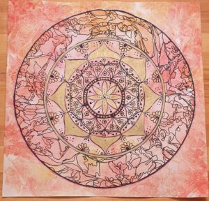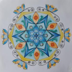 - 2 dalis – Spalvų reikšmės, derinimas. Kupolinio ir žiedinio modelio kūrimas. Akvarelinė laboratorija. Intuityvios akvarelinės mandalos piešimas ir aptarimas.