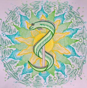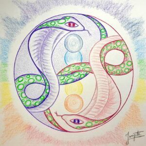 - 9 dalis – Mano autorinė tema – Toteminė mandala. Darbas su energetiniais centrais, spalvom ir vidiniais totemais.